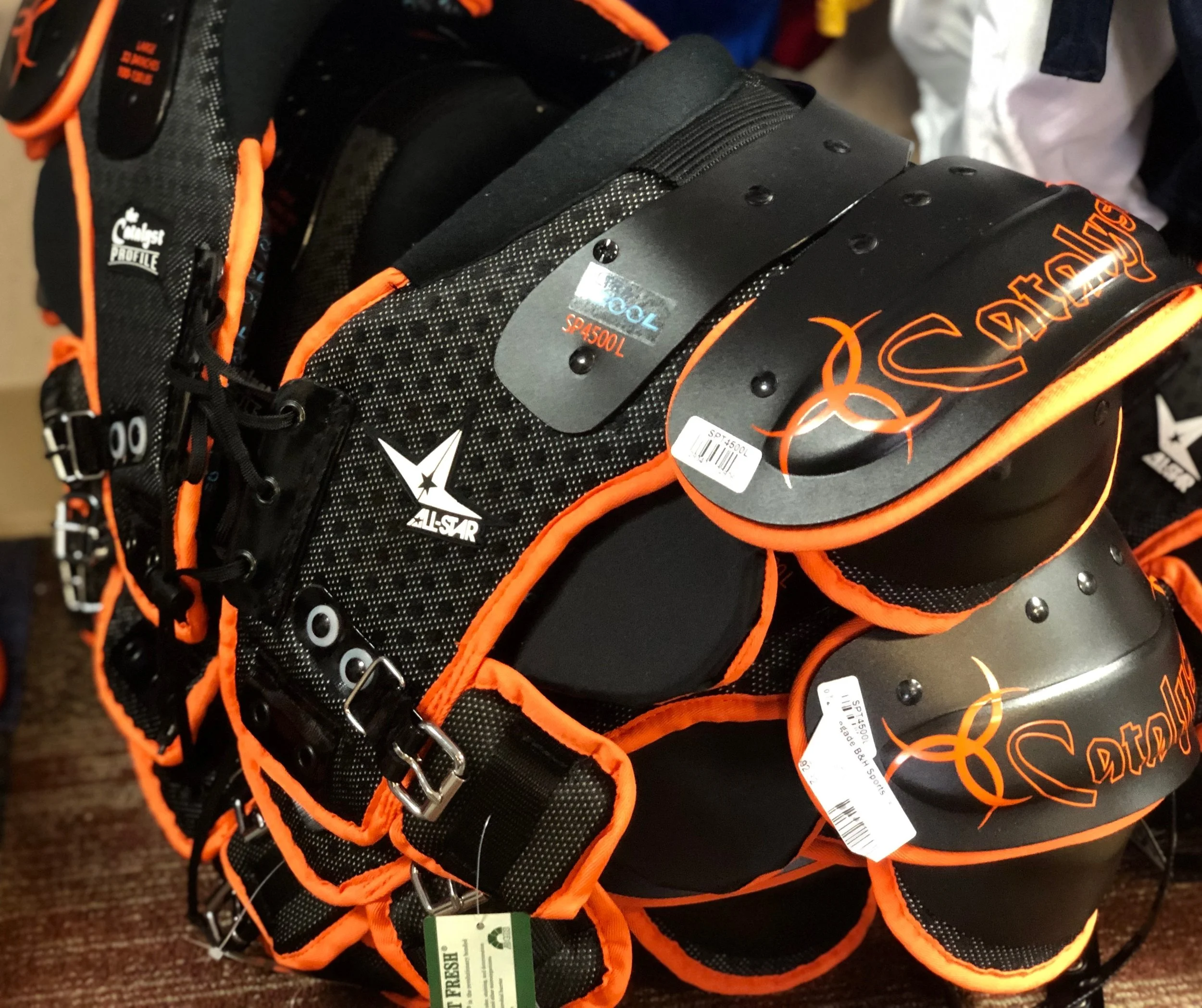 Discover an extensive range of products to elevate your upcoming sporting season to new heights. Whether it's top-notch equipment or impeccably tailored custom uniforms for your team, we have everything you need. Browse our selection of letter jackets and infuse them with a personalized touch that truly reflects your individuality. We invite you to schedule an appointment on our website for a custom fitting, ensuring a perfect fit with unparalleled comfort. Your satisfaction is our utmost priority, and we are committed to delivering a seamless experience as you gear up for success.